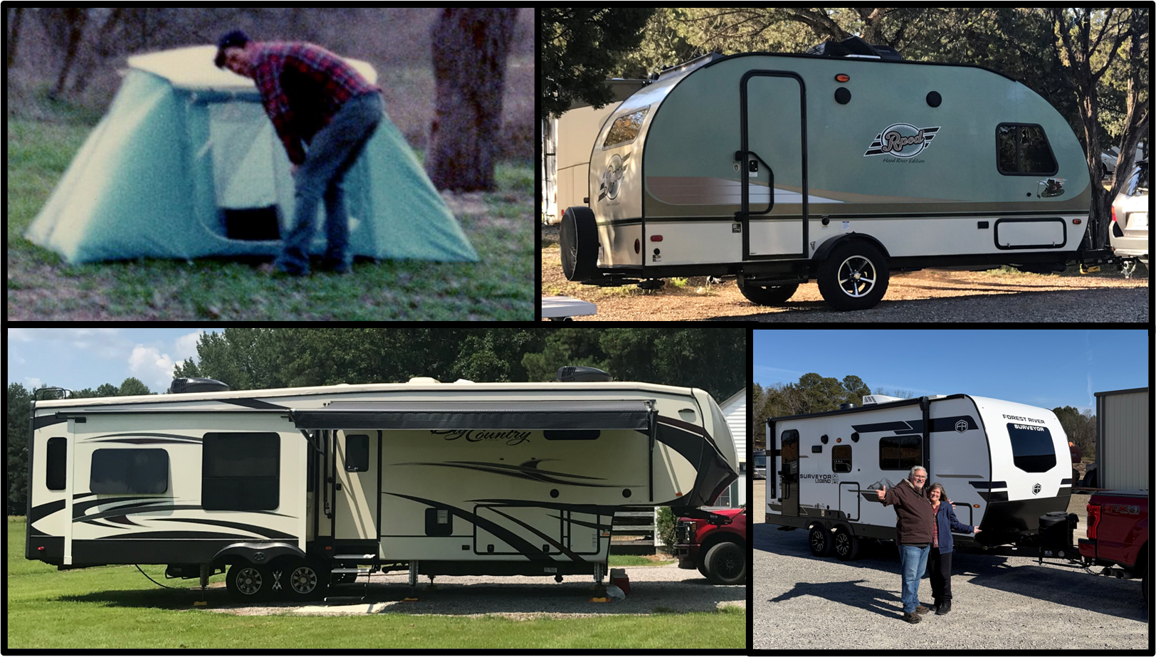 As you can see from the photo below, we started out in a nylon tent traveling from California to Florida in February 1975. This was our honeymoon paradise for 6 weeks. The tent is one of the first nylons from Coleman at the time.