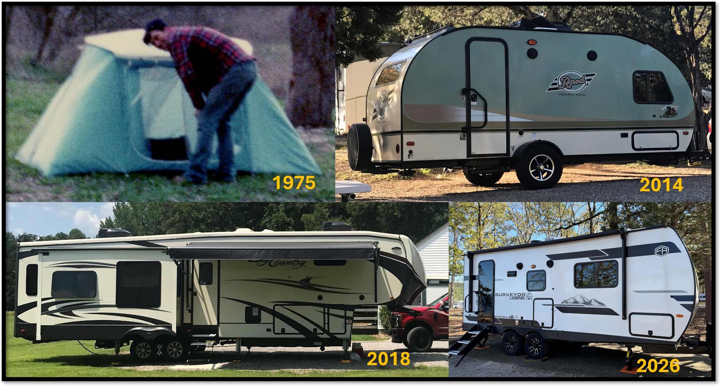 As you can see from the photo below, we started out in a nylon tent traveling from California to Florida in February 1975. This was our honeymoon paradise for 6 weeks. The tent is one of the first nylons from Coleman at the time.